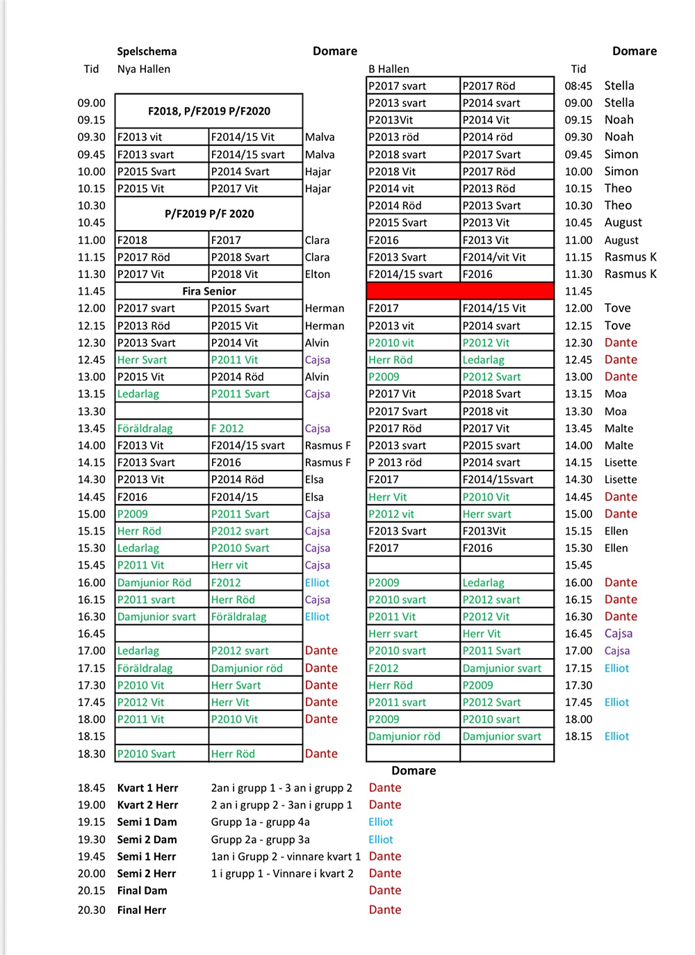 På bifogad bild kan ni se matchtiderna för respekitve lag, samt ev. tider för slutspelet.