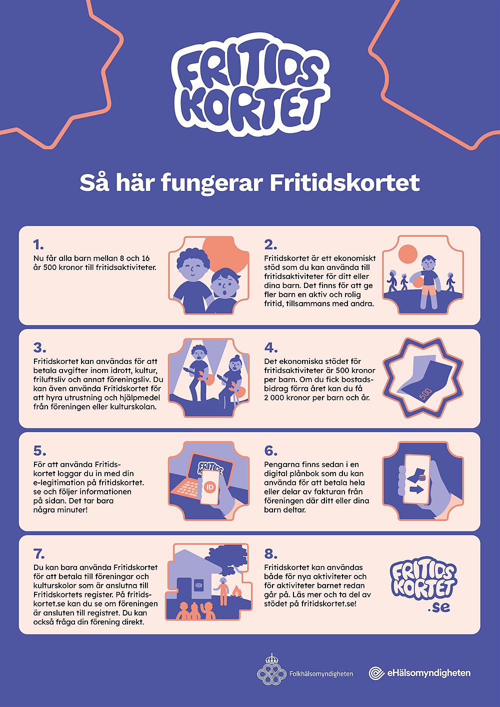 Föreningen har ansökt om och blivit beviljad möjligheten att erbjuda Fritidskortet på anmälningsavgiften. Detta kommer att kunna erbjudas från och med vårterminen 2026, i samband med att föreningsavgiften skickas ut. Här är en enkel guide hur det går till.